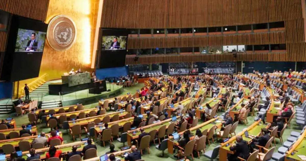 শুক্রবার (১২ সেপ্টেম্বর) নিউইয়র্কে জাতিসংঘ সদর দফতরে অনুষ্ঠিত এই ভোটাভুটিতে প্রস্তাবটি উত্থাপন করে ফ্রান্স ও সৌদি আরব। ঘোষণাটিতে একদিকে ২০২৩ সালের ৭ অক্টোবর হামাসের হামলার নিন্দা জানানো হয়েছে, অপরদিকে গাজায় ইসরাইলের অবরোধ, বোমাবর্ষণ ও মানবিক বিপর্যয়েরও সমালোচনা করা হয়েছে।