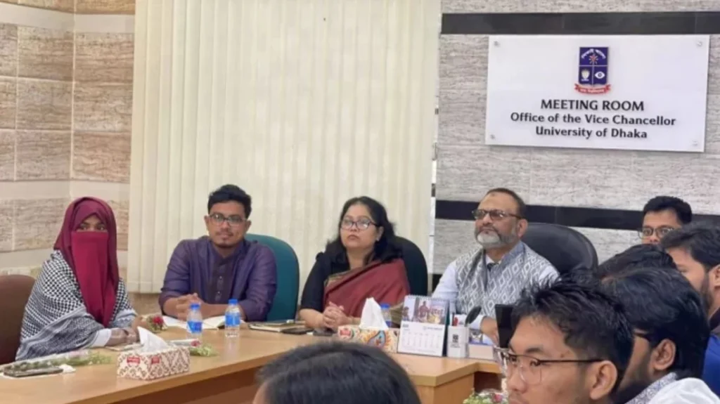 সভার সভাপতিত্ব করেন ঢাকা বিশ্ববিদ্যালয়ের উপাচার্য অধ্যাপক ড. নিয়াজ আহমেদ খান। উপস্থিত ছিলেন সহ-সভাপতি (ভিপি) মো. আবু সাদিক (সাদিক কায়েম), সাধারণ সম্পাদক (জিএস) এসএম ফরহাদ, সহ-সাধারণ সম্পাদক (এজিএস) মহিউদ্দিন খানসহ নির্বাচিত অন্যরা।