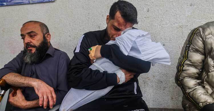 গাজা সিটির দক্ষিণের রেমাল পাড়ার আল-কাওসার টাওয়ার লক্ষ্য করে ইসরায়েলি বাহিনী মিসাইল হামলা চালিয়েছে এবং দুই ঘণ্টার মধ্যেই ভবনটি ধ্বংস হয়ে গেছে। টানা বোমাবর্ষণে হাজার হাজার মানুষ এলাকা ছেড়ে পালাতে বাধ্য হচ্ছে।