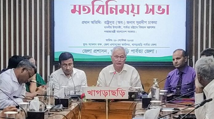 রোববার (২৮ সেপ্টেম্বর ২০২৫) খাগড়াছড়ি জেলা প্রশাসক কার্যালয়ের সম্মেলনকক্ষে অনুষ্ঠিত এক মতবিনিময় সভায় উপদেষ্টা এসব কথা বলেন। সম্প্রতি ছাত্রী ধর্ষণের ঘটনাকে কেন্দ্র করে খাগড়াছড়িতে উদ্ভূত পরিস্থিতি নিয়ে এ সভা অনুষ্ঠিত হয়।