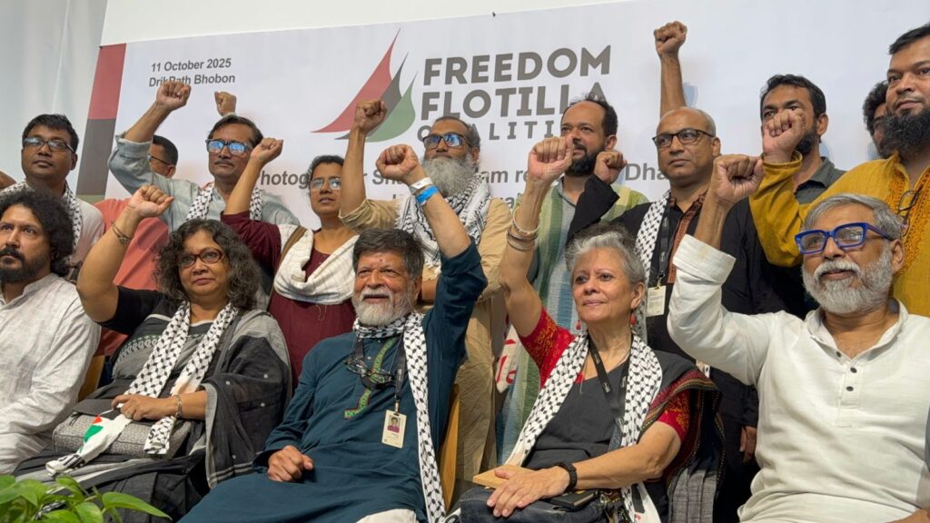 রাজধানীর পান্থপথের একটি হোটেলে বিকেল তিনটায় আয়োজিত এক সংবাদ সম্মেলনে শহিদুল আলম বলেন,“আমাদের ফ্লোটিলা জাহাজে হেলিকপ্টার নিয়ে প্রায় ৫০ জন ইসরায়েলি সেনা হামলা চালায়। তারা আমাদের আটক করে দুই হাঁটুর উপর ভর দিয়ে বসতে বাধ্য করে, দুই হাত পিঠের পিছনে রেখে মাথা নিচু করে রাখা হয় দুই ঘণ্টারও বেশি সময়।”