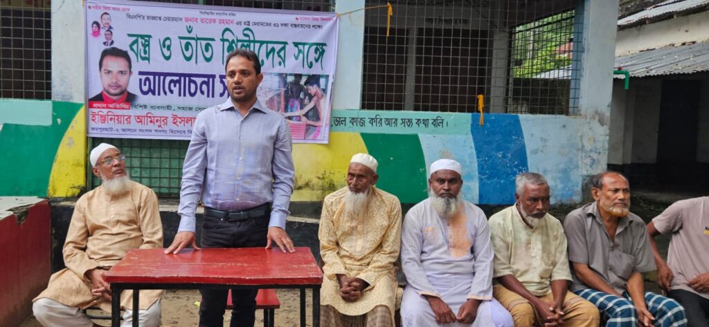 শনিবারে তাঁত শিল্পীদের সাথে মতবিনিময় সভায় প্রধান অতিথি হিসেবে বক্তব্য রাখেন, আসন্ন সংসদ নির্বাচনে বিএনপির মনোনয়ন প্রত্যাশী ইঞ্জিনিয়ার আমিনুর ইসলাম।