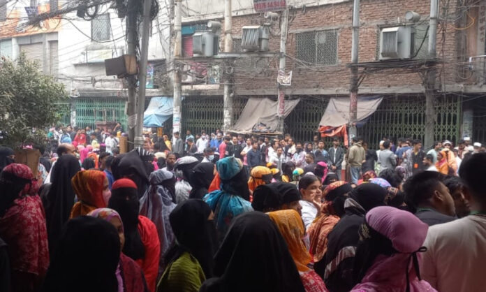 নারায়ণগঞ্জ প্রতিনিধি: নারায়ণগঞ্জ শহরের রাসেল গার্মেন্টস অনির্দিষ্টকালের জন্য বন্ধ ঘোষণা ও শ্রমিক ছাঁটাইয়ের প্রতিবাদে কারখানার সামনে অবস্থান কর্মসূচি ও বিক্ষোভ পালন করছেন শ্রমিকরা।