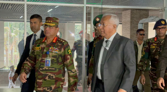 আজ রবিবার দুপুর ১২টায় নির্বাচন কমিশন কার্যালয়ে এ বৈঠক শুরু হয়। বৈঠকে সেনাবাহিনী প্রধান জেনারেল ওয়াকার-উজ-জামান, নৌবাহিনী প্রধান অ্যাডমিরাল মোহাম্মদ নাজমুল হাসান ও বিমানবাহিনী প্রধান এয়ার চিফ মার্শাল হাসান মাহমুদ খানের পাশাপাশি নির্বাচন কমিশনাররাও উপস্থিত রয়েছেন।