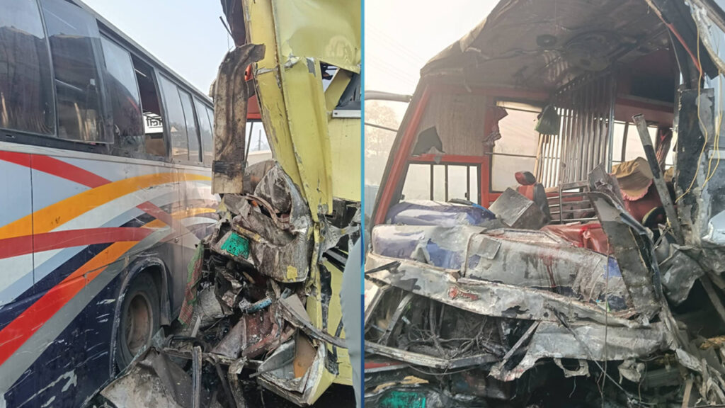 পুলিশ সূত্রে জানা যায়, সকালে সিলেট থেকে ঢাকার উদ্দেশে ছেড়ে যাওয়া এনা পরিবহনের একটি বাসের সঙ্গে গাইবান্ধা থেকে সিলেটগামী শ্যামলী পরিবহনের বাসের সংঘর্ষ হয়। এ সময় ঘটনাস্থলেই দুইজনের মৃত্যু হয় এবং বেশ কয়েকজন যাত্রী আহত হন। খবর পেয়ে পুলিশ ও ফায়ার সার্ভিসের সদস্যরা দ্রুত ঘটনাস্থলে পৌঁছে উদ্ধারকাজ শুরু করে এবং তাদেরকে হাসপাতালে প্রেরণ করেন। সংঘর্ষের সময় ইউনিক পরিবহনের আরও একটি যাত্রীবাহী বাস আংশিক ক্ষতিগ্রস্ত হয়।