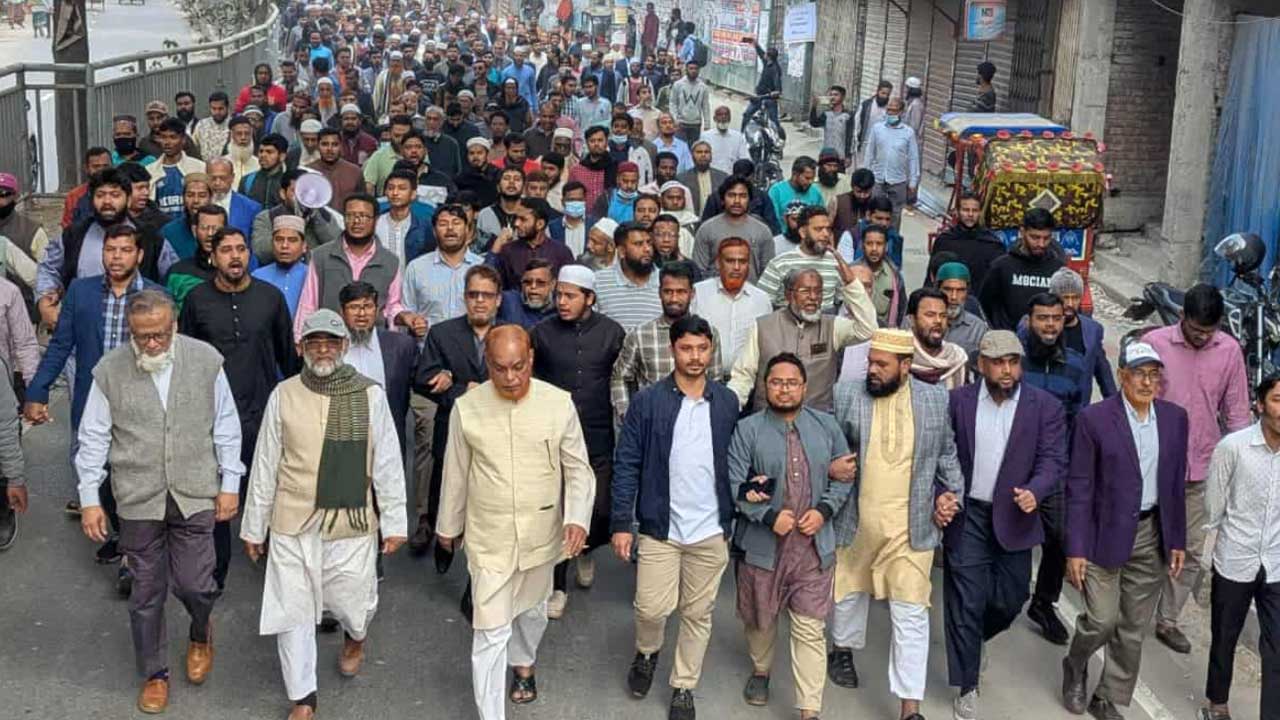 জামায়াত নেতাকর্মীদের ওপর সন্ত্রাসী হামলার প্রতিবাদে বুধবার (২১ জানুয়ারি) সকালে রাজধানীর মিরপুরে এক বিক্ষোভ মিছিল অনুষ্ঠিত হয়।
